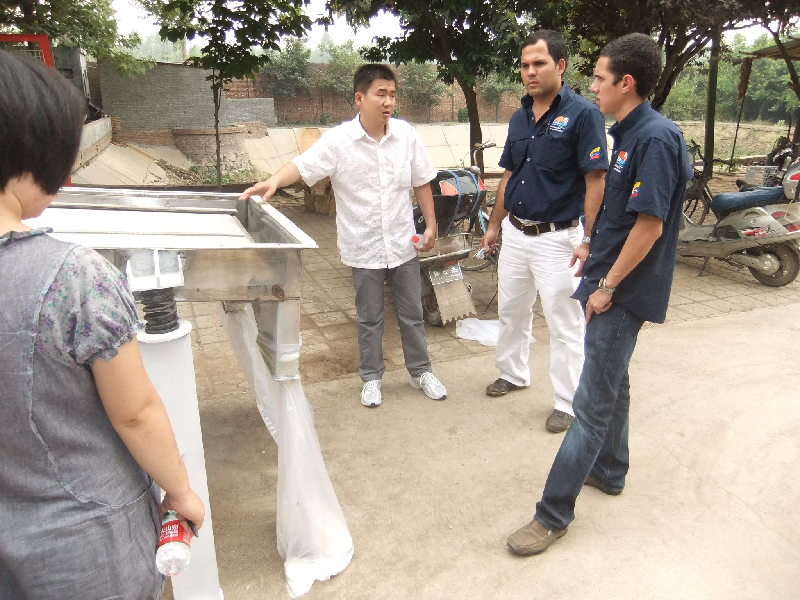 今天上午10時,委內(nèi)瑞拉客戶到達新鄉(xiāng),由我公司外貿(mào)部趙經(jīng)理陪同入住賓館。下午1點到達我廠參觀,對我公司的綜合實力給予了高度的評價(下圖為委內(nèi)瑞拉客戶到訪我公司)